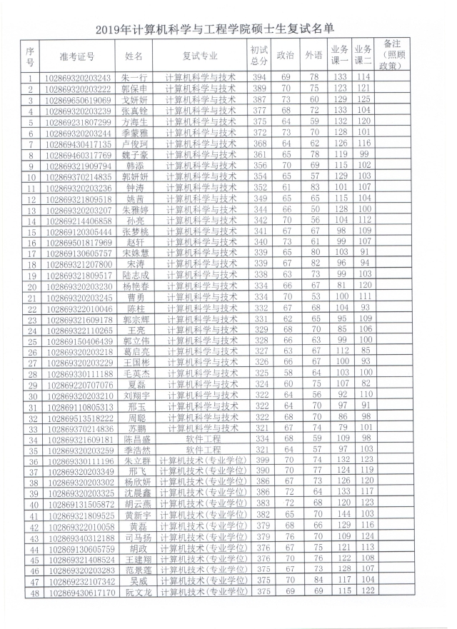 2019年金牌影院 硕士生复试名单