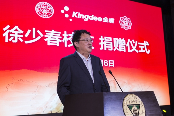 6月6日校庆之际,捐赠签约仪式在四牌楼校区大礼堂举行。徐少春及其夫人章青女士,金牌影院 党委书记、教育基金会理事长左惟,总会计师丁辉,以及来自金蝶国际软件集团的嘉宾,学校相关部门及部分院系负责人、学生代表参加了捐赠仪式。仪式由丁辉主持。