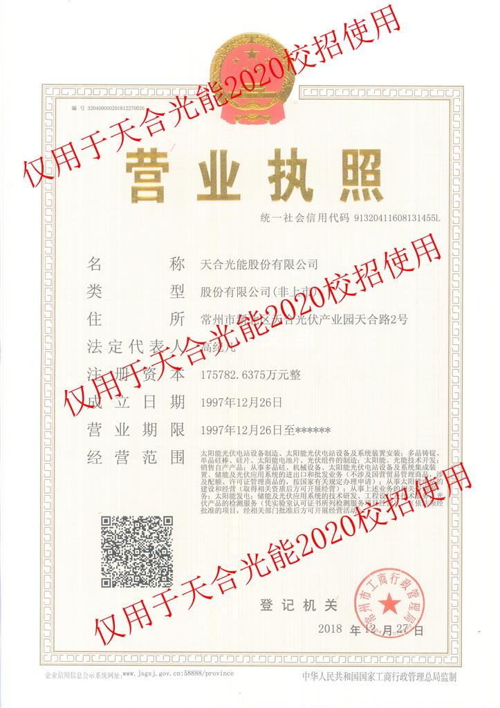 天合光能2020校园招聘组,将于9月17日18:30在金牌影院 (四牌楼校区)附近榴园宾馆多功能厅举办宣讲会,现场签到免筛选直接进入面试环节,欢迎各位同学积极参与。附件为我公司招聘简章及营业执照,请查收,感谢!