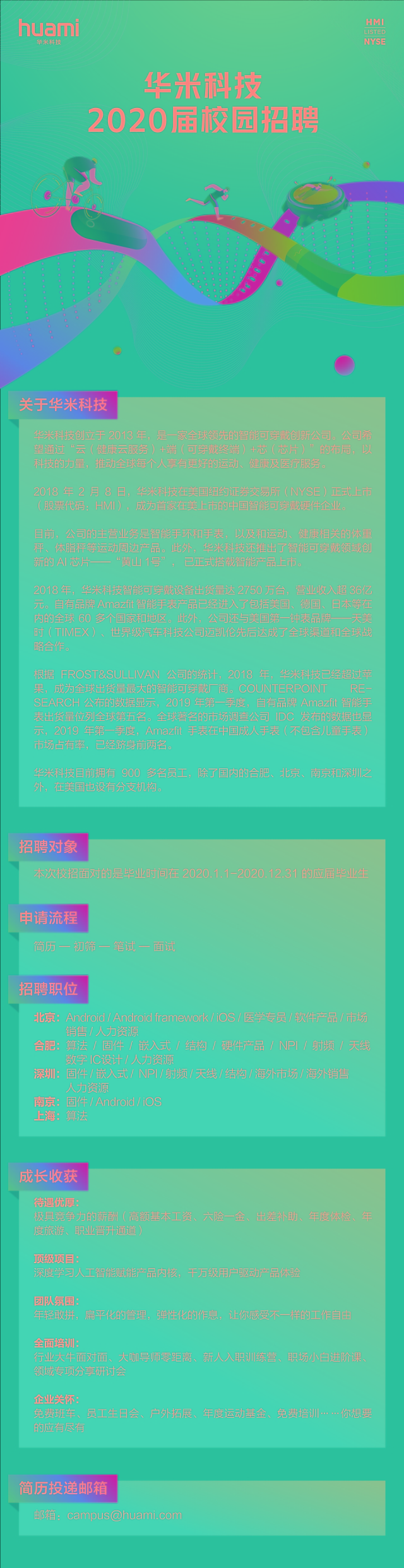 华米科技是由小米公司投资联合成立的,主要做小米手环等智能可穿产品,已于2018年美国纽约证券交易所上市;