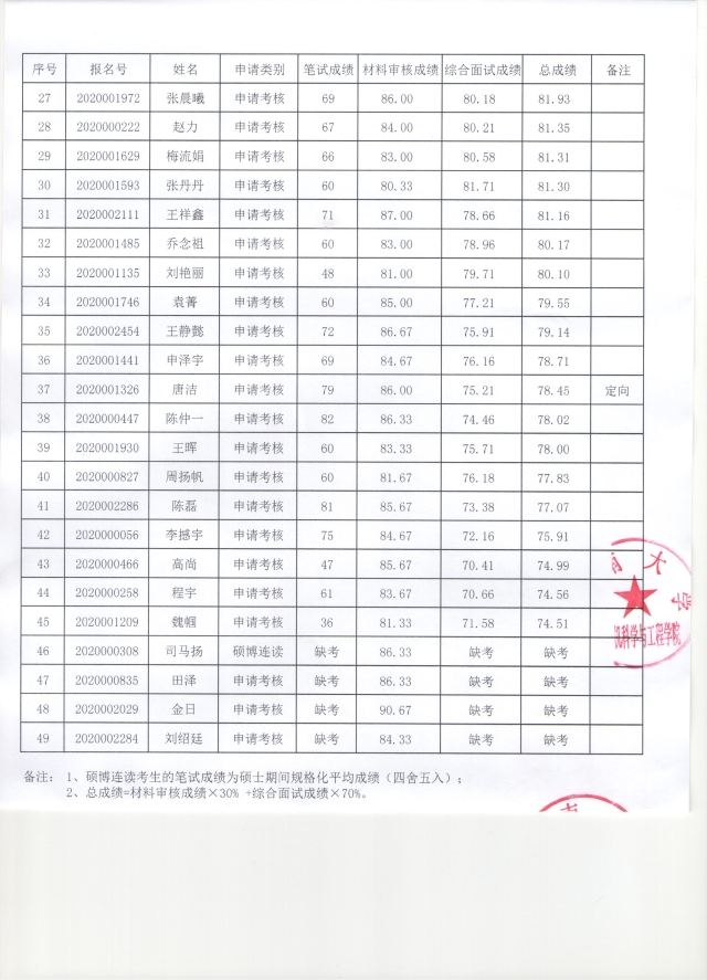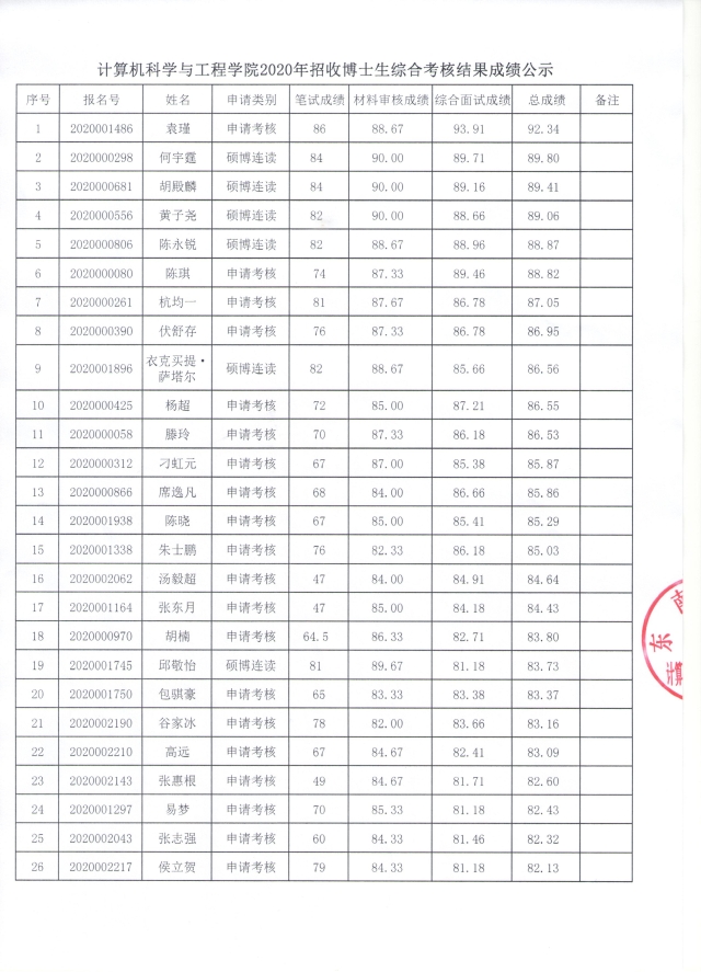 金牌影院 2020年招收博士生综合考核结果成绩公示