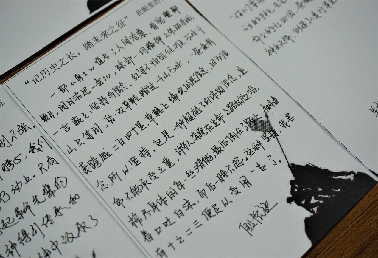 讲述长征故事、观看长征电影之后,支部成员都感触颇多,纷纷写下自己的长征寄语,字句之间充满热血与真实,纸笔之上流露出什么是“英雄史诗,不朽丰碑”。