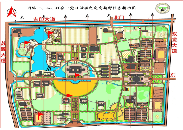 本次趣味定向越野以比赛形式进行,为提高活动参与度,设一二三等奖,越野路线分布在学校西南到西北一侧,全程5公里。比赛以小组形式进行,每两人一组,需按照地图找到四个隐秘任务点并完成相关任务从而收集印章,最后按照用时长短进行排名。