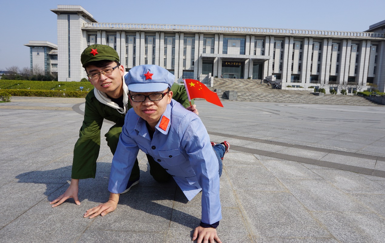 第二个任务点名为“遵义会议”,位于图书馆门口的月牙湾,在本关卡中党员们需根据任务提示,抽取一张长征中的经典照片,并穿上军装还原其情景并拍照留念。时隔80年,当我们穿上军装看着照片上那些坚毅而让人感动的画面时,依然为之动容。