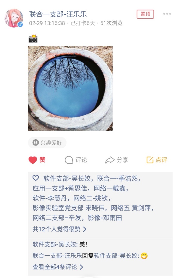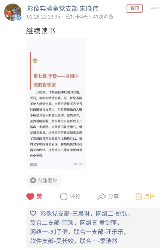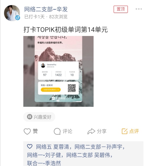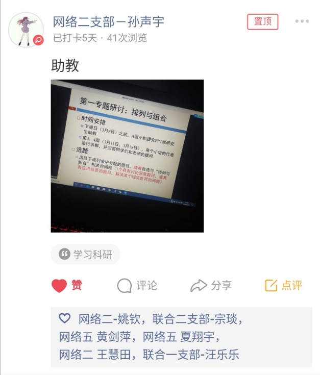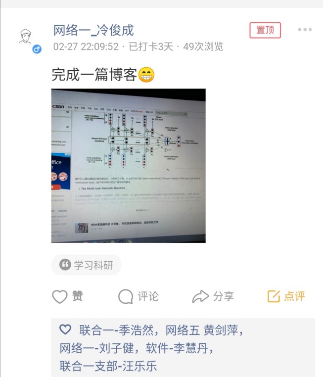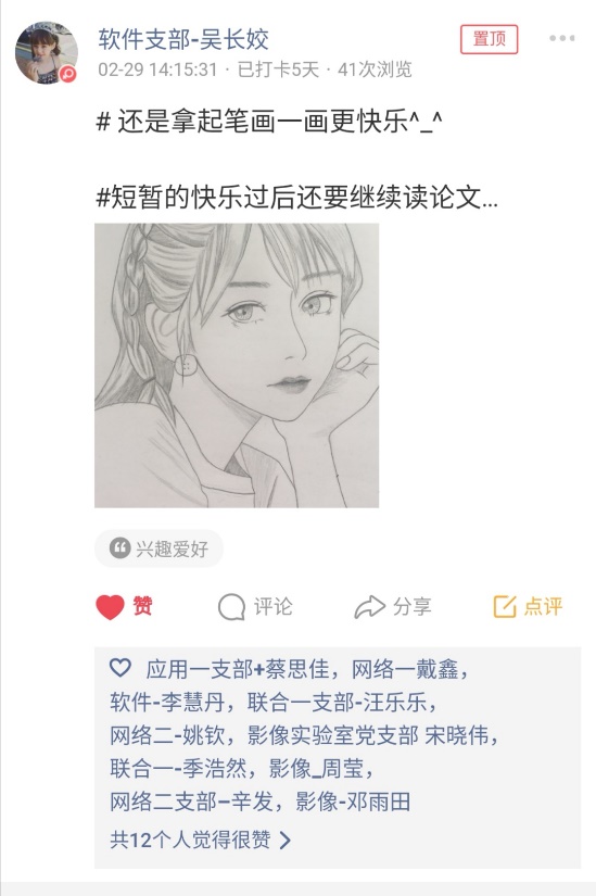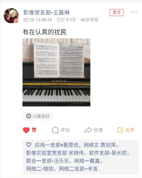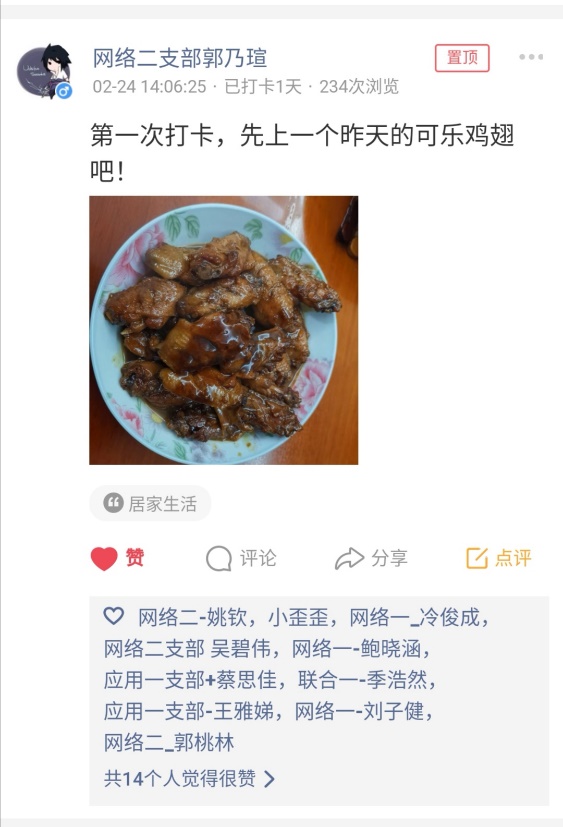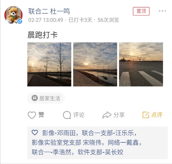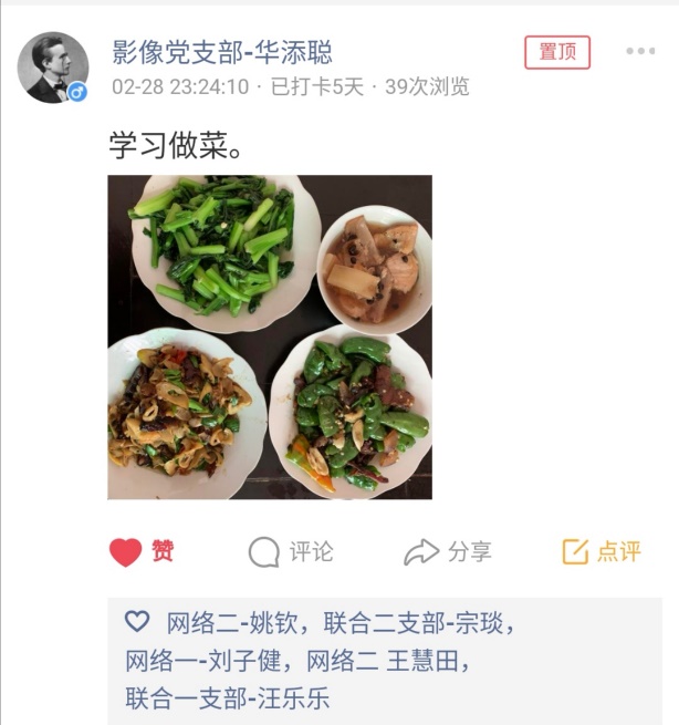活动期间,党员同学们积极响应,截止第一周结束,累计发布了四百多条动态。现从中挑选了一些代表性的打卡记录,和大家一起分享。