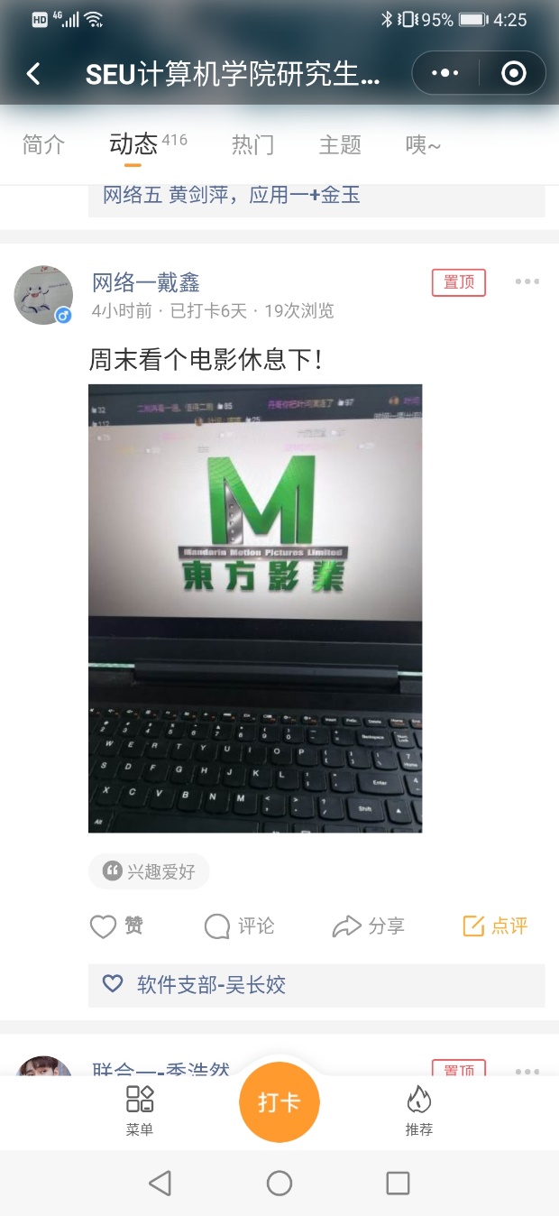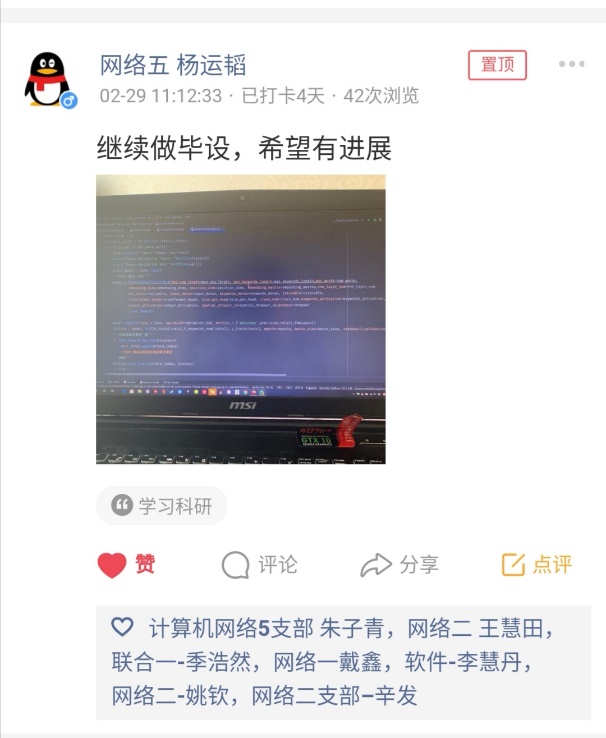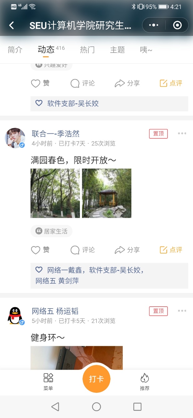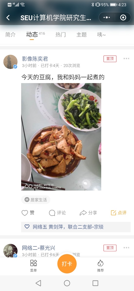 计算机学院研究生各党支部于2月24日发起了“SEU计算机学院研究生党日活动”线上打卡活动,以倡导广大研究生党员同学居家进行学习科研等活动,养成良好的生活习惯,分享每日生活中的小快乐。