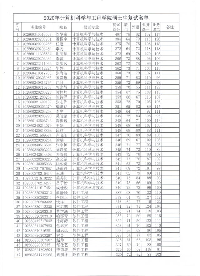 2020年金牌影院 硕士生复试名单