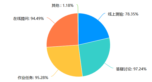 虽然在线教学不能面对面交流,但授课教师通过各种途径,也能促进师生互动,活跃课堂气氛。开展的线上交互方式也多种多样,包括线上测验、答疑讨论、作业布置、课堂提问、QQ群选择题投票、语音互动、抢答等。