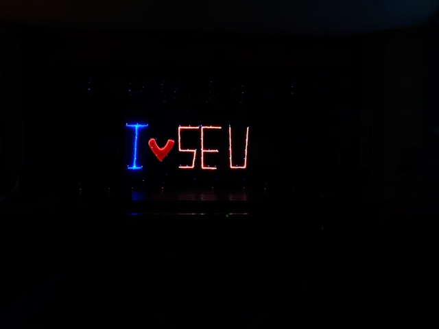 观众们也欣赏了学院成就视频,领略了学院60年来的风采,观看了张晨旭同学带来的院庆视频,从中了解了学院优秀师生的风貌,以及单冯老师团队拍摄的无人机表演视频:一架架无人机在精确地操控下拼出了“ISEU”、“CSE”、“60”等字样,为学院60周年庆生,展现我们专业的同时,更体现了学院良好的精神与活力。
