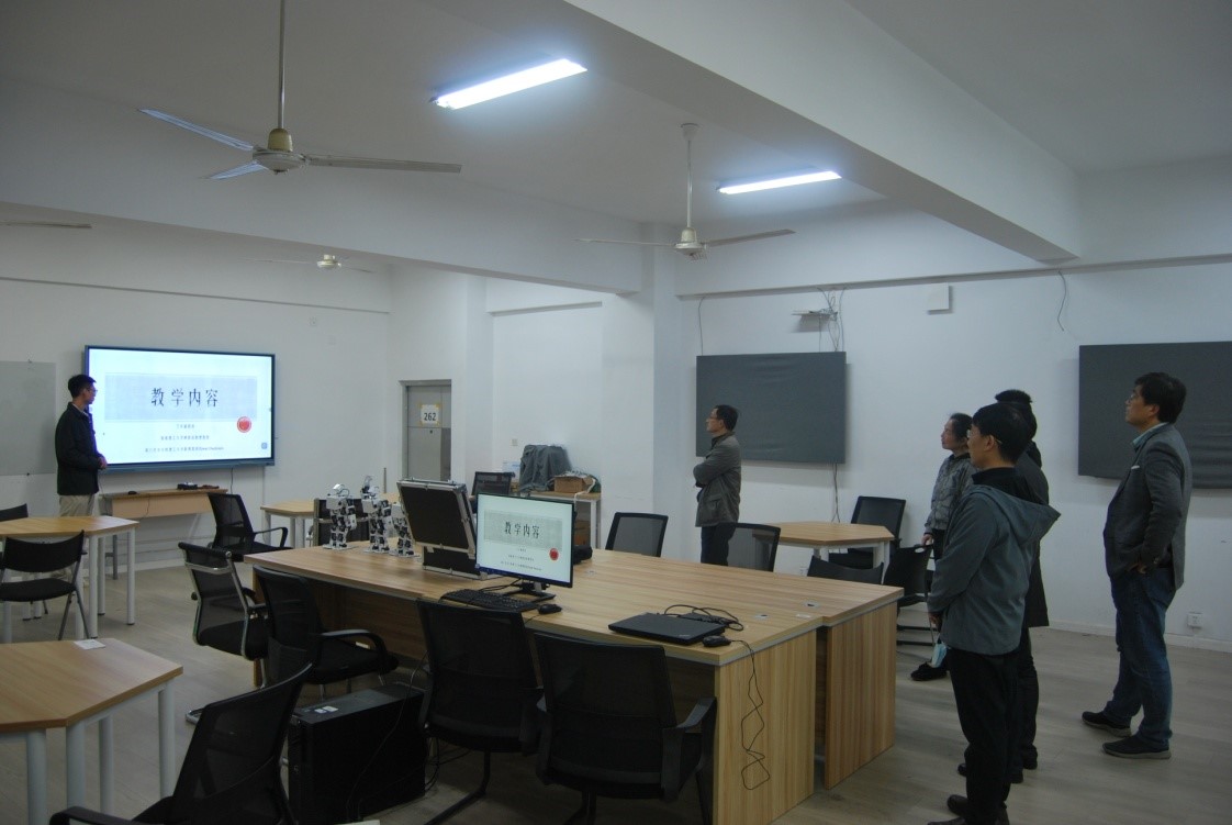 随后,评审组前往金牌影院 计算机教学实验中心、东大-联想增强现实与计算机视觉联合创新中心、学生研讨室、人工智能学生俱乐部等地进行现场考察。