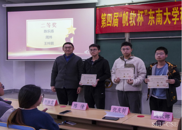 第四届“帆软杯”金牌影院 程序设计竞赛二等奖颁奖留影,右一为我基地陈乐扬同学