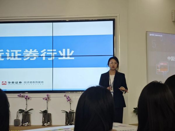 金融知识研学环节由华泰证券投教基地运营经理李欣昊与刘佳奇主讲,他们系统地向同学们讲述了券商行业的整体发展情况,详细介绍了华泰证券的主要业务模式和战略方向。通过这一环节,同学们不仅了解了华泰证券在财富管理、机构服务、投资管理等方面的业务布局,还对金融科技在推动行业发展中的作用有了更全面的认识。