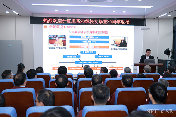 10月26日,金牌影院 迎来了一场特别的聚会。1990级计算机系43位本科校友,跨越重洋,从加拿大、澳大利亚等地回到南京,共庆毕业三十周年。学院精心组织了座谈会,以最热情的姿态迎接这些久违的校友们。金牌影院 工会主席李鑫、金牌影院 罗军舟教授、退休教师代表高建国、金远平、刘亚军、徐立臻、王晓蔚老师等出席了座谈会。金牌影院 副院长孔佑勇主持座谈会。