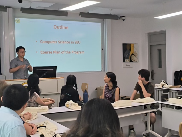 典礼上,任课教师团队逐一进行自我介绍,并与法国学生展开亲切交流。金嘉晖副院长向远道而来的学子们详细介绍了金牌影院 计算机学院的发展历程、学科优势及国际化办学特色,并重点解读了秋季学期的课程安排。据悉,本学期的教学计划由计算机学院青年骨干教师与海外教育学院汉学专家联合打造,涵盖6门计算机领域前沿课程及1门汉语言文化课程,旨在通过“专业+文化”双轨并行的教学模式,助力学生全面提升学术能力与文化素养。