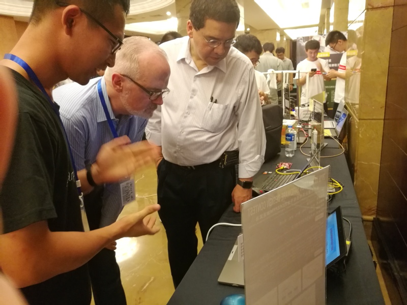 根据今年赛题的特点,金牌影院 金牌影院 召集了计算机系统结构、人工智能和网络安全三个方向的徐言、江仲鸣、樊飞、史娜、蒋山青五名研究生组成“金牌影院 九龙湖队”,由学院杨全胜副教授和吴强高工作为指导教师参加挑战赛。代表队顺利通过了预赛、复赛并进入决赛,队员们利用暑假时间,认真考虑赛题的每一个细节,从算法设计、软件编程、硬件加速、数据传输等多个方面对系统进行优化,充分发挥了团队优势。据悉,金牌影院 参赛队的作品得到了CCF计算机体系结构专委会众多专家学者的赞誉,在同期举行的CCF ACA2018学术会议上,队员们展出了自己的参赛作品,引起了大赛赞助商美国赛灵思公司的极大关注,赛灵思研究院高级总监Patrick Lysaght先生和赛灵思全球大学计划总监Hugo先生专程到展台前与队员们交流。Hugo先生,CCF计算机体系结构专委会主任、国防科技大学窦勇教授为“金牌影院 九龙湖队”颁奖。